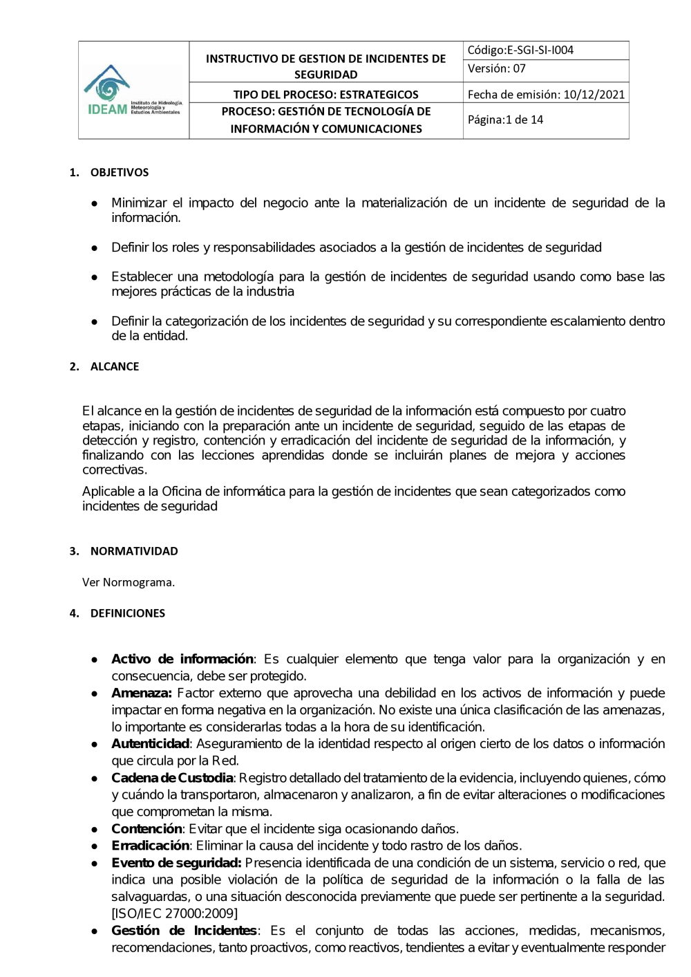E-SGI-SI-I004 INSTRUCTIVO DE GESTION DE INCIDENTES DE SEGURIDAD V7