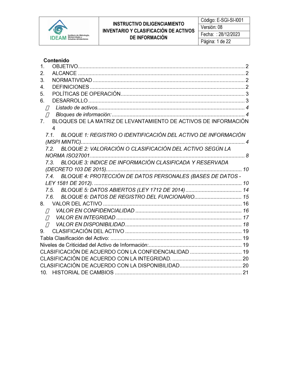 E-SGI-SI-I001 INSTRUCTIVO INVENTARIO Y CLASIFICACION ACTIVOS INFORMACION V8