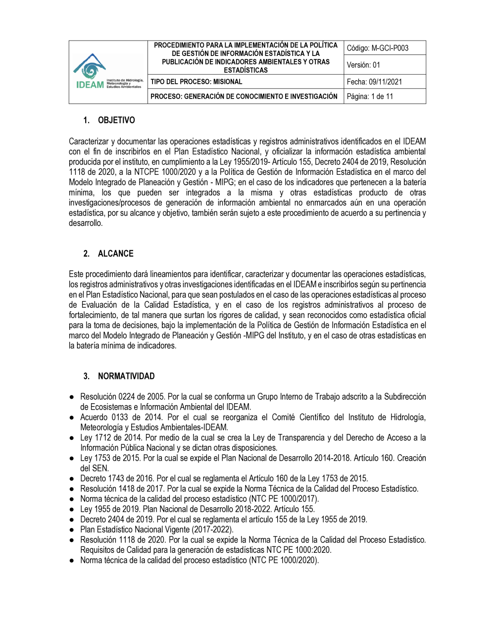 M-GCI-P003 PROCEDIMIENTO CARACTERIZACION Y PUBLICACION INDICADORES OOEE_RRAA_OTRAS INVES V1