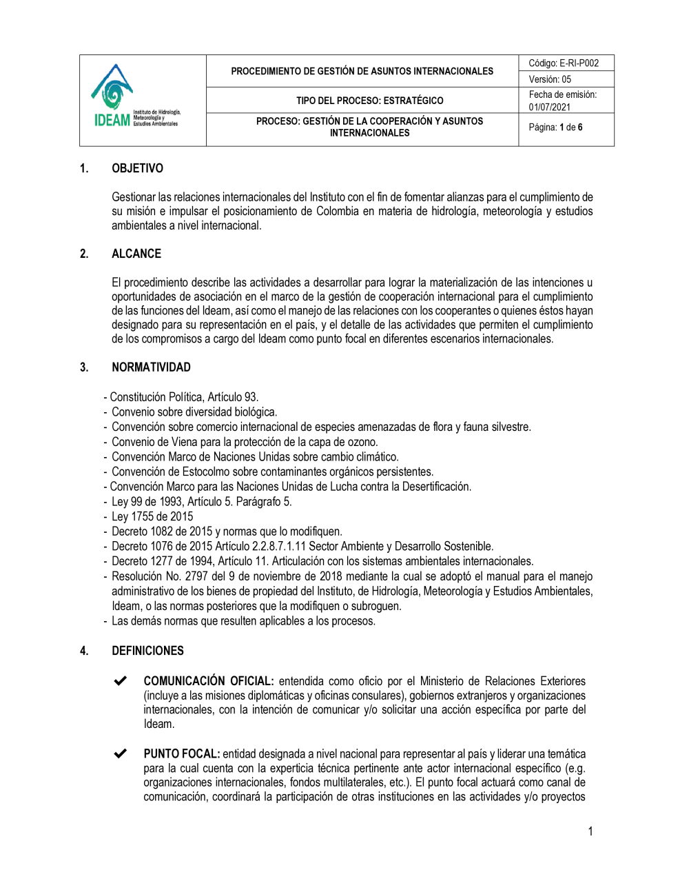 E-RI-P002 PROCEDIMIENTO DE GESTIÓN DE ASUNTOS INTERNACIONALES V5