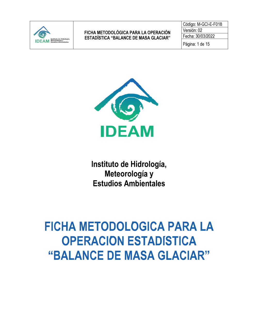 M-GCI-E-F018 FICHA METODOLÓGICA PARA LA OPERACIÓN ESTADÍSTICA BALANCE DE MASA GLACIAR V2