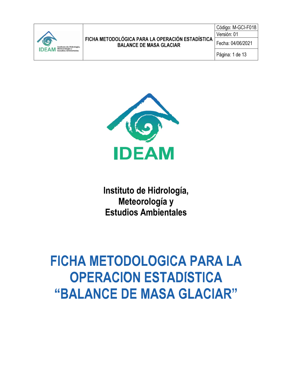 M-GCI-E-F018 FICHA METODOLÓGICA PARA LA OPERACION ESTADISTICA BALANCE DE MASA GLACIAR
