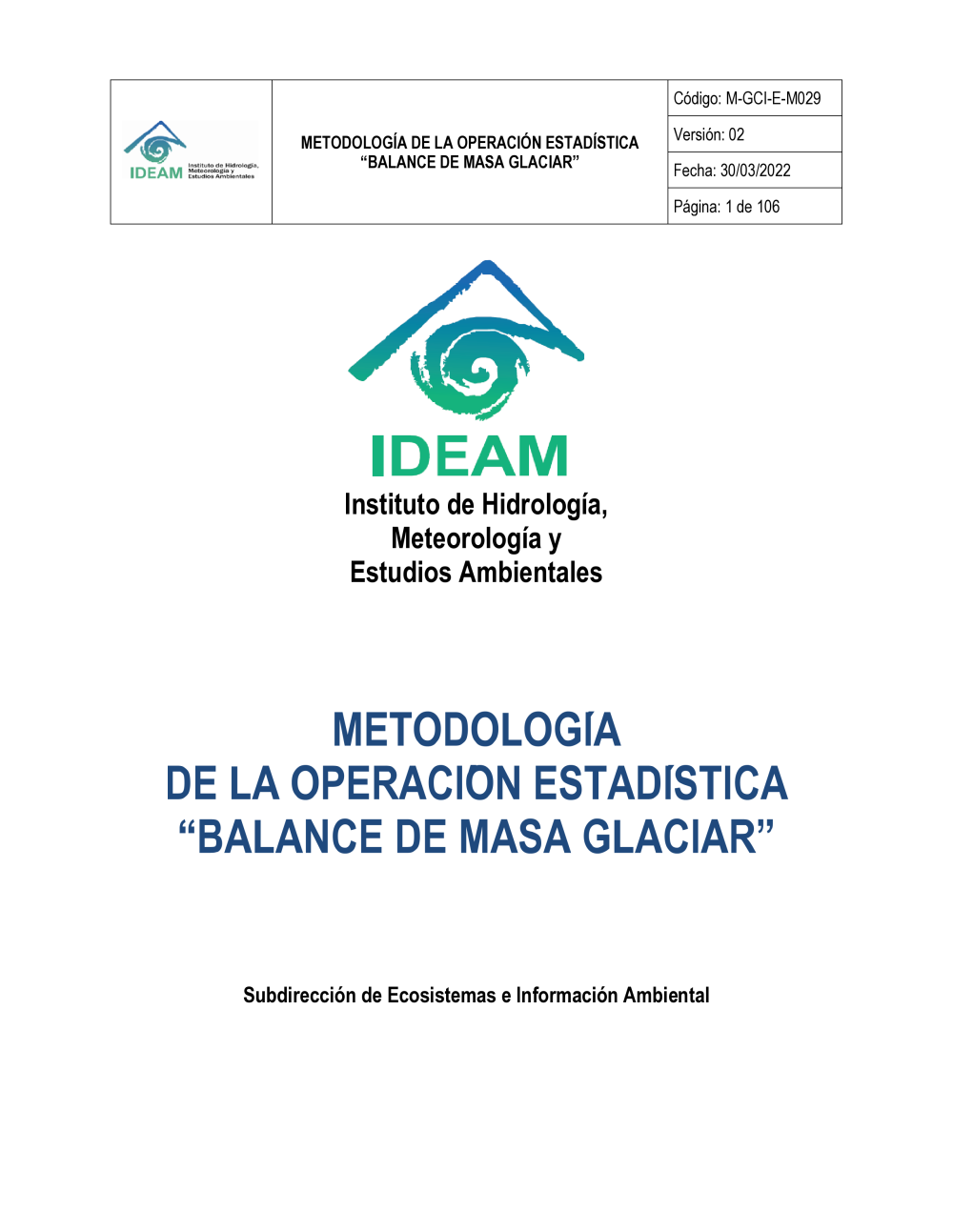 M-GCI-E-M029 METODOLOGÍA DE LA OPERACIÓN ESTADÍSTICA BALANCE DE MASA GLACIAR V2