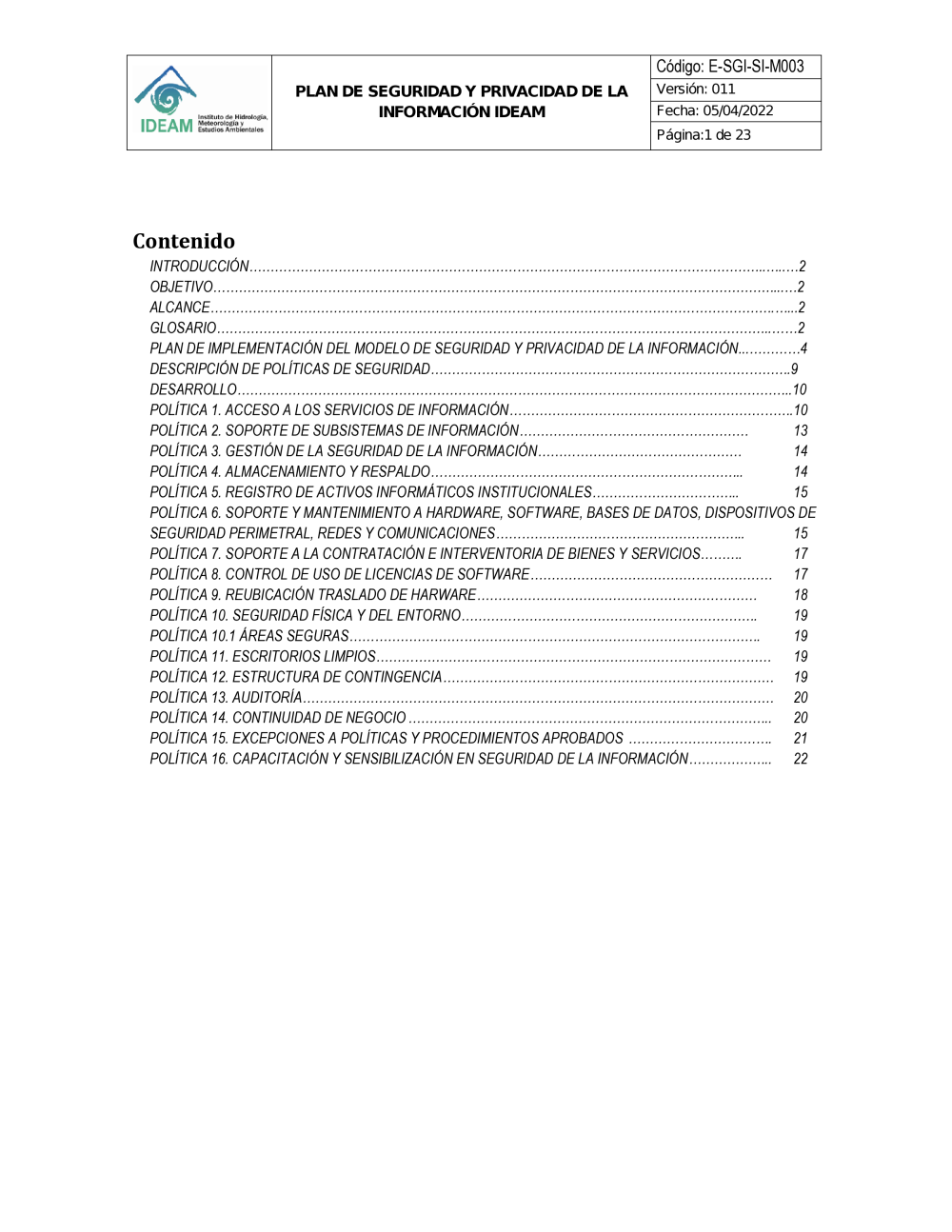 E-SGI-SI-M003 PLAN DE SEGURIDAD Y PRIVACIDAD DE LA INFORMACION V11