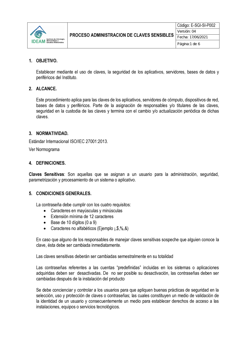 E-SGI-SI-P002 PROCESO ADMINISTRACION DE CLAVES SENSIBLES