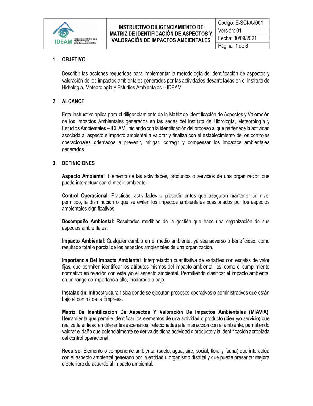 E-SGI-A-I001 INSTRUCTIVO DILIGENCIAMIENTO MATRIZ MIAVIA V1